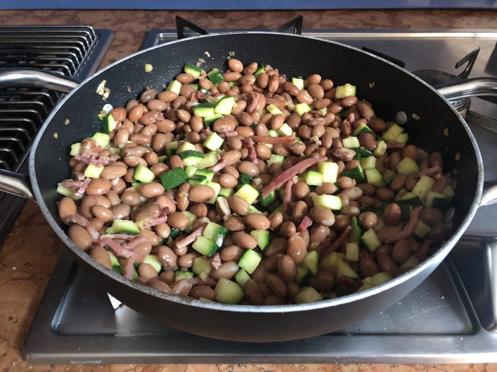 Faites-les cuire 4/5 minutes, puis ajoutez les haricots et laissez-les s’imprégner des saveurs pendant quelques minutes.