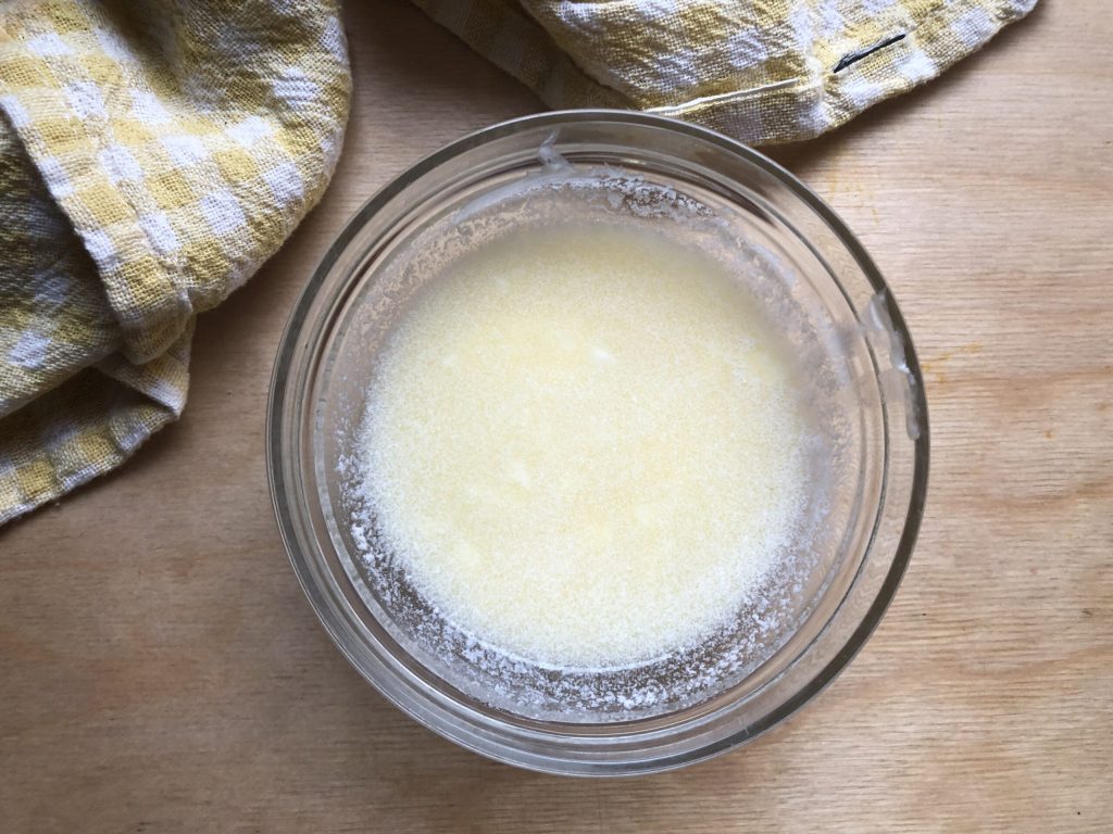Faire fondre le beurre au bain-marie ou au micro-ondes et le laisser tiédir.