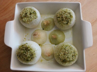 Remplir avec ce mélange les 4 oignons, en le pressant bien avec une petite cuillère.