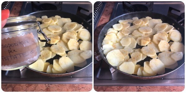 • Assaisonner les pommes de terre avec du sel et du poivre à votre goût. J’ai utilisé mon assaisonnement spécial pour pommes de terre. Si la recette vous intéresse, vous pouvez la trouver en cliquant ICI.