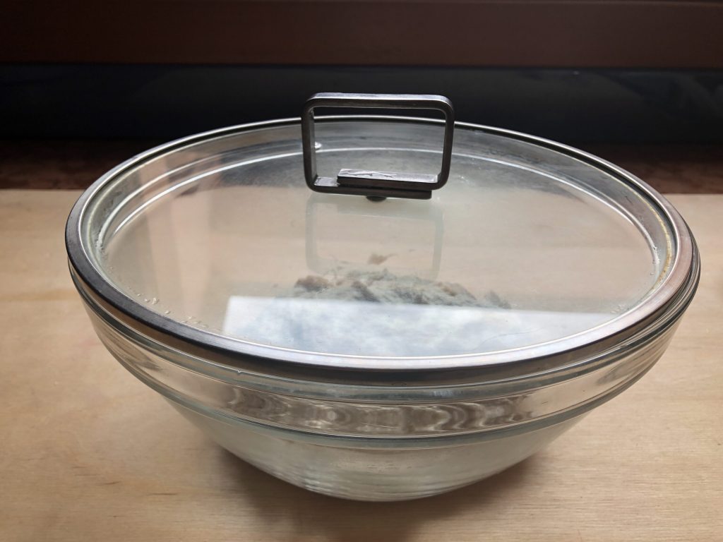Répéter ensuite les quatre plis, couvrir à nouveau et laisser lever jusqu’à ce que le volume double dans un endroit tiède à l’abri des courants d’air : le temps de levée dépend beaucoup de la température ambiante et peut varier de 5 à 6 heures.
