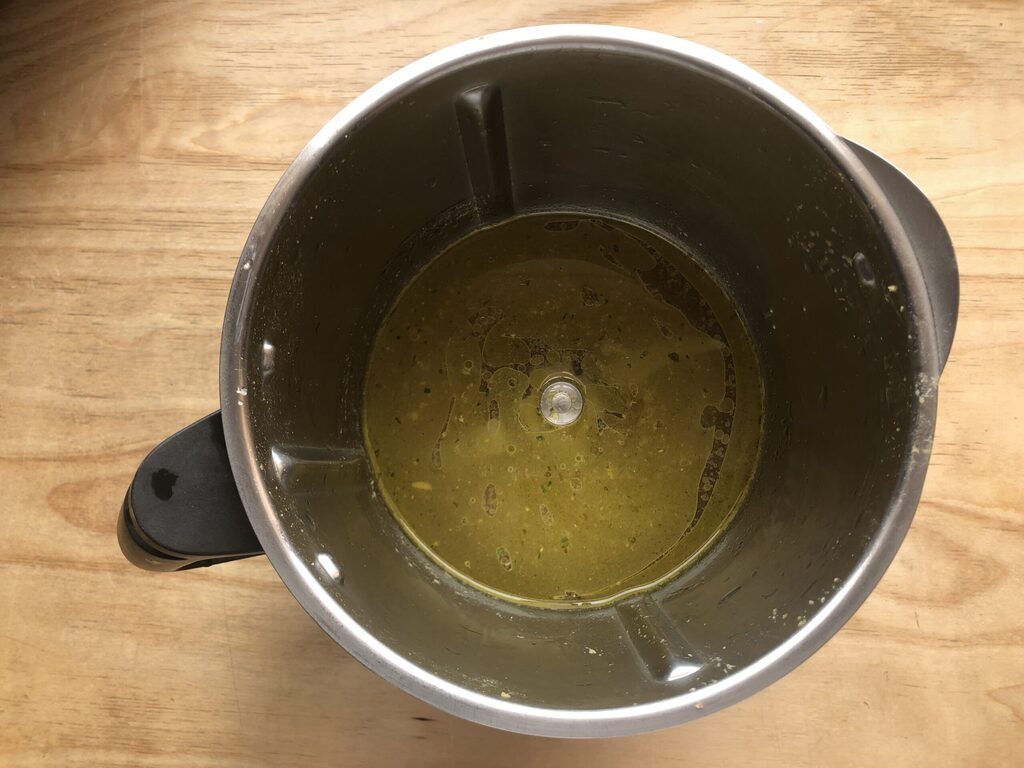 Verser dans le bol l’huile, l’eau et le vin blanc.