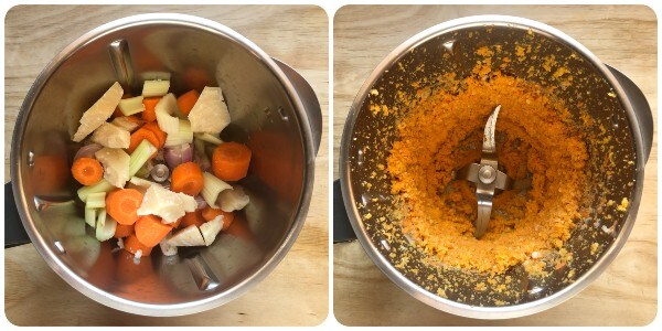 La recette de ce pain de viande est pour le Bimby. Pour le réaliser sans, vous aurez besoin d’un robot culinaire standard pour hacher les légumes et mélanger les différents ingrédients, et d’un cuiseur vapeur pour la cuisson. Si vous n’avez pas de cuiseur vapeur, vous pourriez envisager de faire bouillir le pain de viande dans une casserole dans le bouillon chaud. La seule différence sera qu’à la fin, vous n’aurez pas la sauce pour arroser les tranches de viande, qui se forme dans le bol du Bimby.
