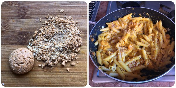 J’habite près de la province de Mantoue et j’ai toujours adoré la courge ; elle a toujours fait partie de la cuisine familiale. Dans ces pâtes à la mantovana, on retrouve un peu l’association d’ingrédients qui caractérise nos raviolis à la courge. Nous avons beaucoup aimé. Très crémeuse avec ce léger contraste sucré-salé que je trouve toujours extrêmement agréable. Un plat principal d’une facilité extrême qui vous fera faire une belle impression. Donc, même si vous n’êtes pas habitués à certains goûts, laissez-vous tenter par cette recette et faites-moi savoir ce que vous en pensez.