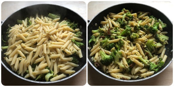 Préparation des pâtes aux brocolis et tomates séchées