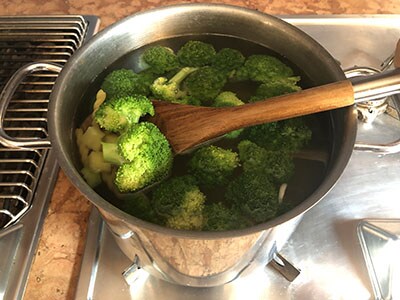 Éliminer les feuilles du brocoli, le laver et le diviser en fleurettes (couper en deux les plus grosses). Avec un couteau, enlever la partie externe de la tige et la couper également en petits morceaux (je vous rappelle qu’elle est délicieuse et que vous ne devez jamais la jeter!).