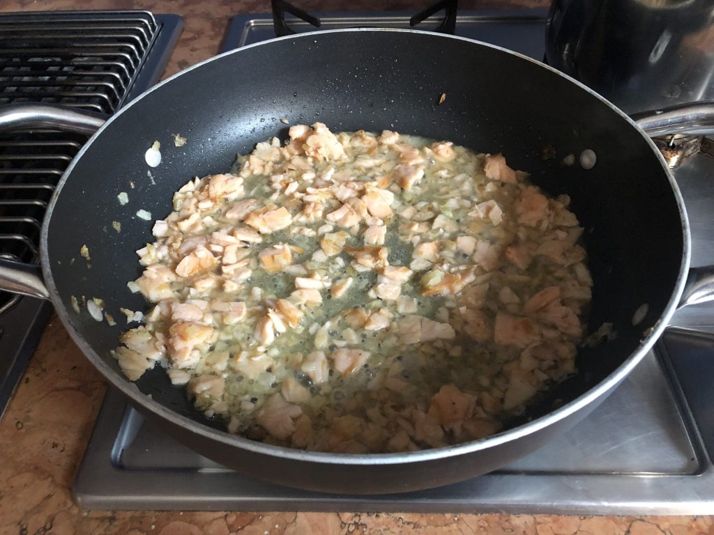 Cuire à feu moyen en remuant de temps en temps jusqu’à ce que le saumon devienne clair.