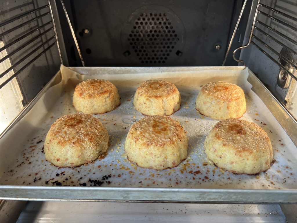 • Au terme de la cuisson, sortez-les du four, démoulez-les sur une plaque recouverte de papier cuisson, saupoudrez-les de fromage râpé et déposez sur chacun une noisette de beurre.