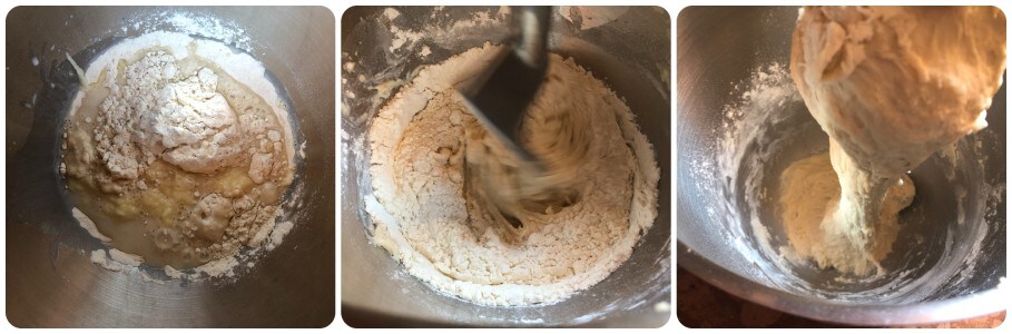 Ajouter ce mélange à la farine et pétrir longuement jusqu’à obtenir un mélange homogène et élastique.