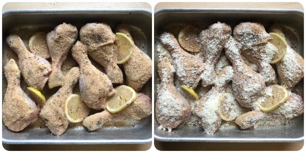 Après les 20 premières minutes de cuisson, retirer la plaque du four, retourner les pilons et les saupoudrer du reste de la chapelure et du fromage.