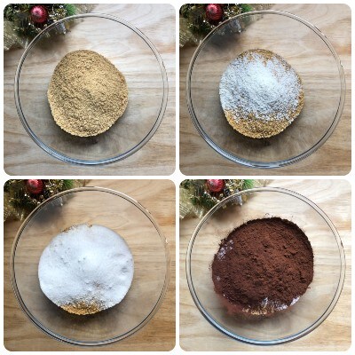 Transférer la poudre obtenue dans un bol, puis ajouter la noix de coco râpée, le sucre et le cacao amer.