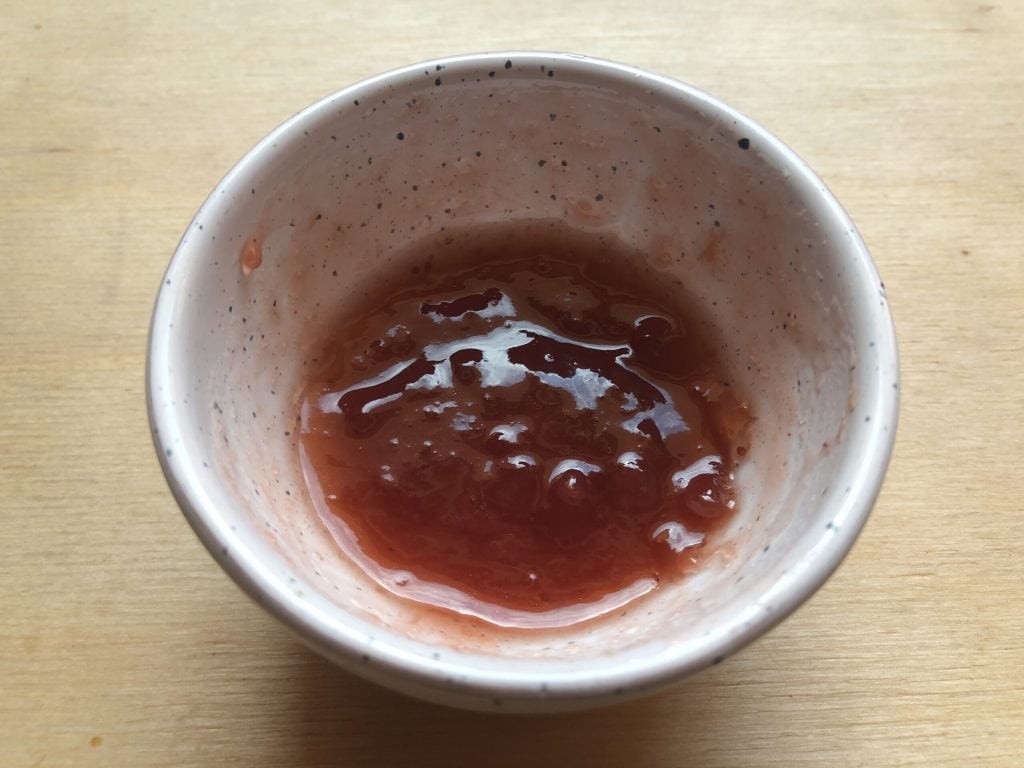 Dans un petit bol, mélanger la confiture (ou la marmelade) choisie avec une cuillère d’eau pour l’assouplir.