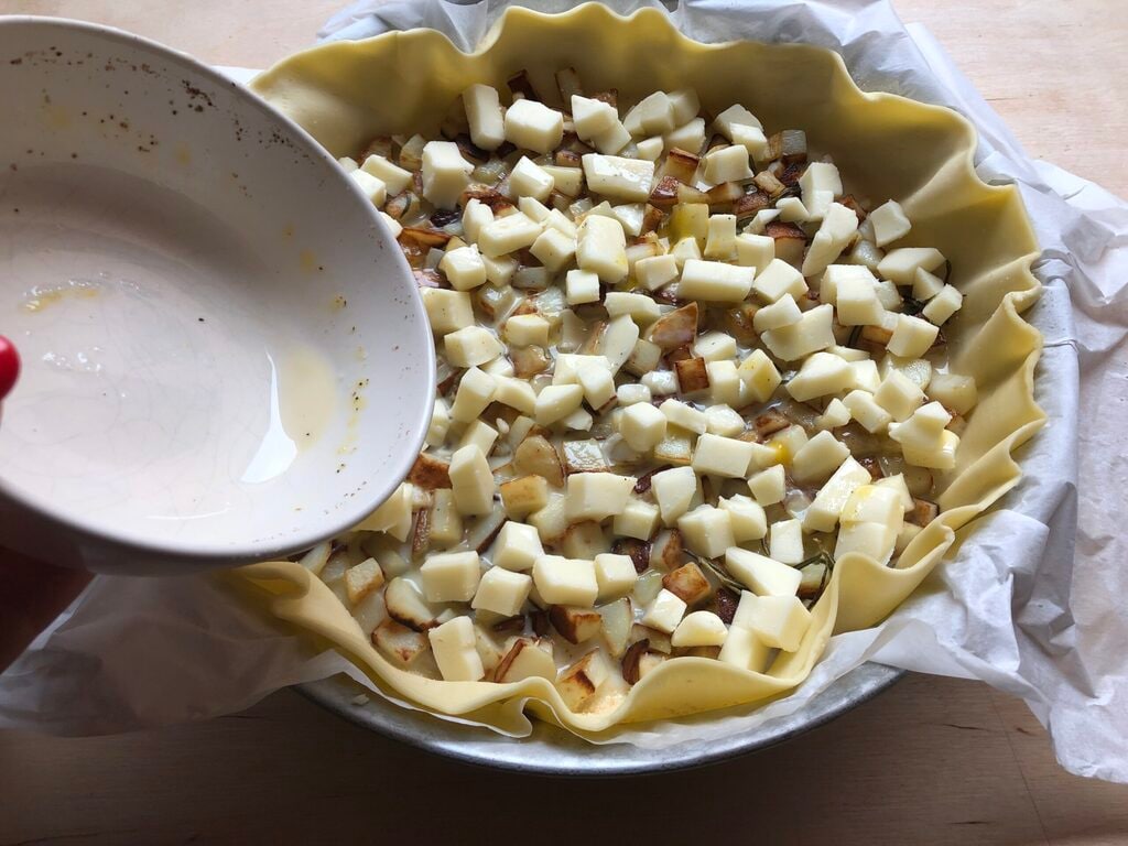 Cuisez la quiche pommes de terre et fromage dans un four statique préchauffé à 180° pendant 30 minutes. Sortez-la du four et laissez-la légèrement tiédir avant de la servir. Bon appétit ! Paola