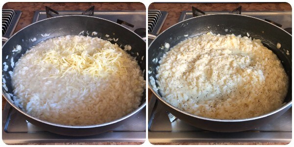 À la fin de la cuisson, ajouter la fontina, éteindre le feu et crémer le risotto en remuant jusqu’à ce que la fontina soit complètement fondue. Assaisonner de sel et parfumer avec une bonne quantité de poivre noir fraîchement moulu.