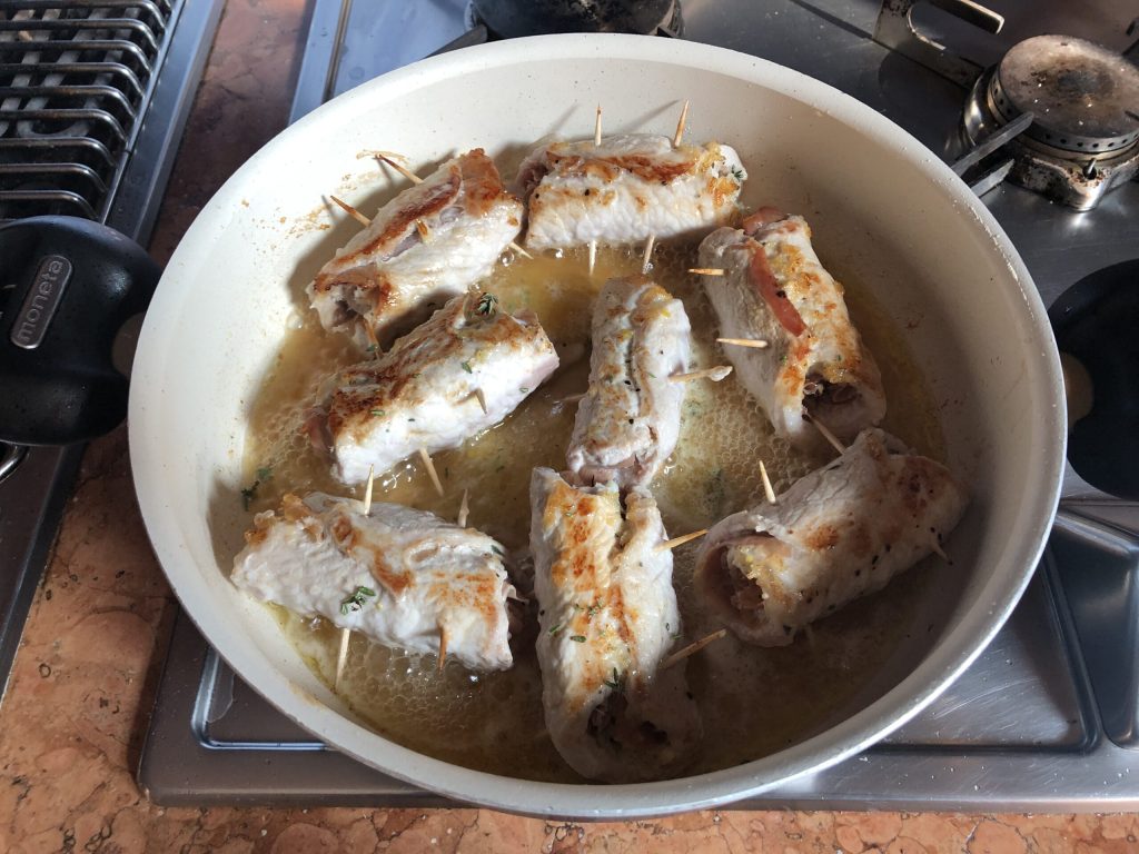 Baissez de nouveau le feu, couvrez et poursuivez la cuisson pendant 8/10 minutes en remuant les rouleaux de temps en temps : si le fond venait à s’assécher, ajoutez une ou deux cuillères d’eau chaude ou de bouillon.
