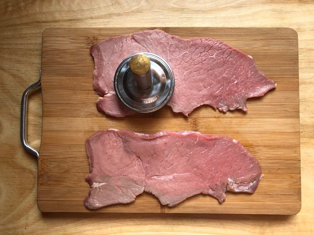Battre légèrement les tranches de viande pour les aplatir un peu.