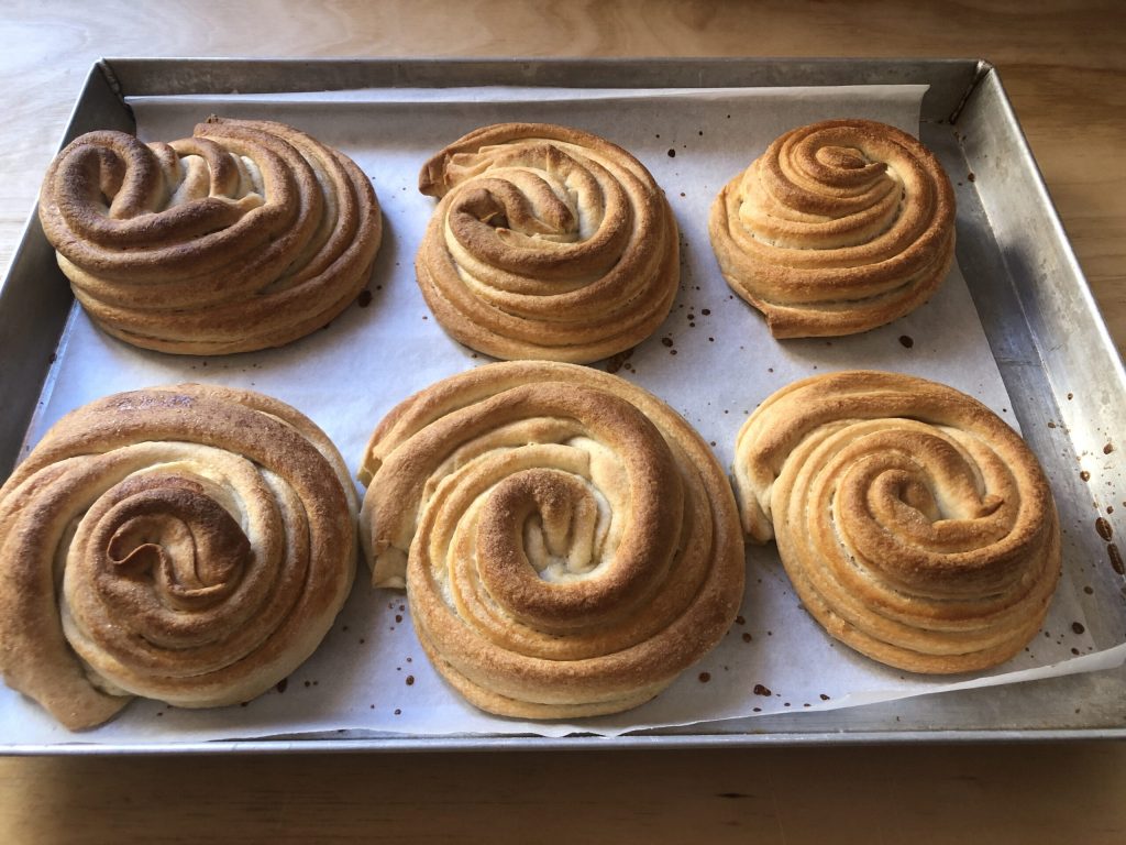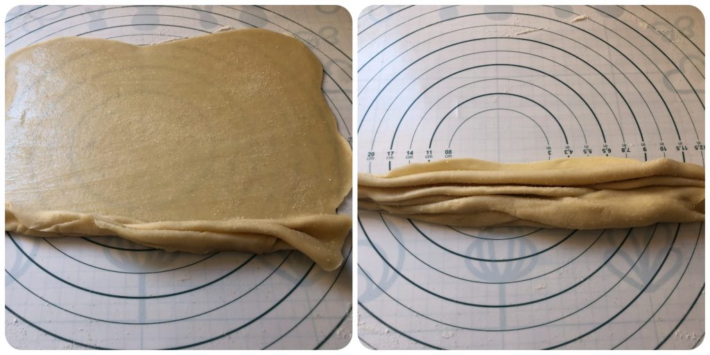 Préparation des roulés sucrés levés
