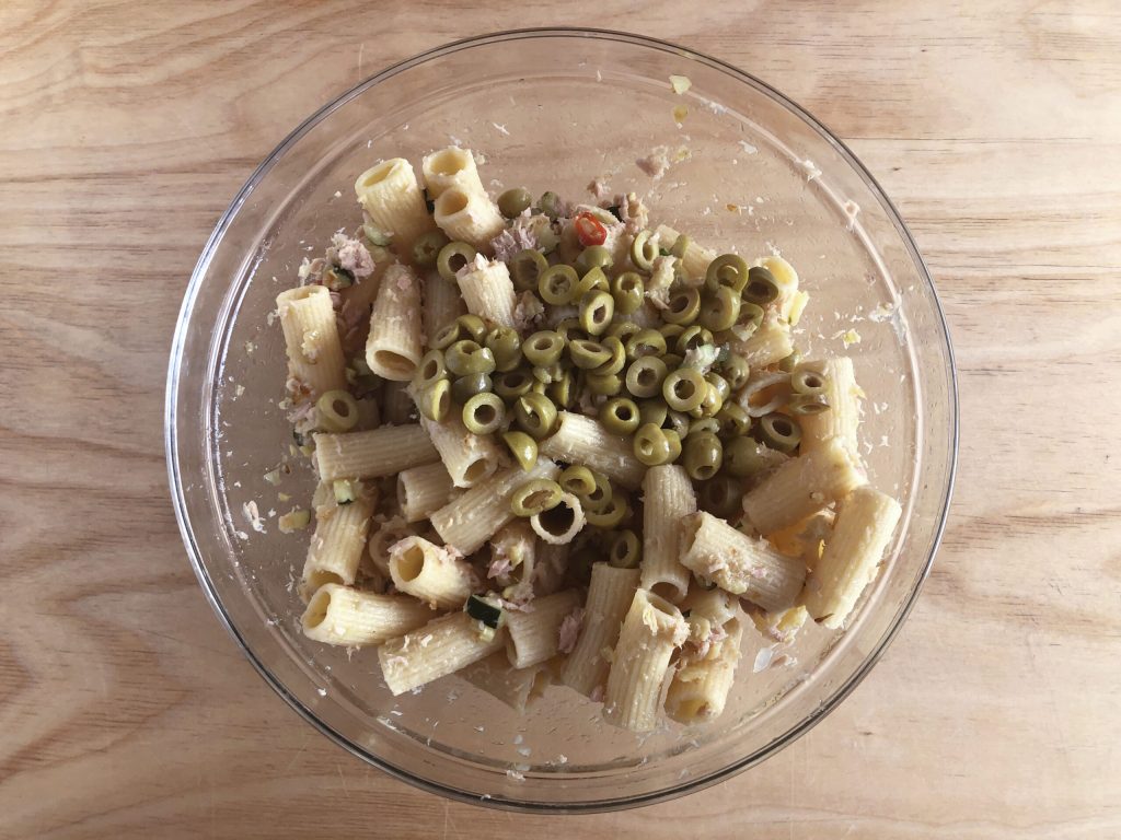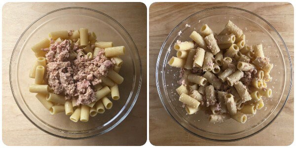 Préparation de la salade de pâtes au thon