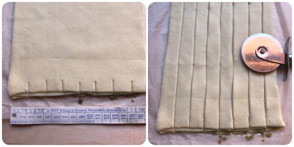 À l’aide d’une roue à pizza, couper huit bandes d’environ 2 cm de large.