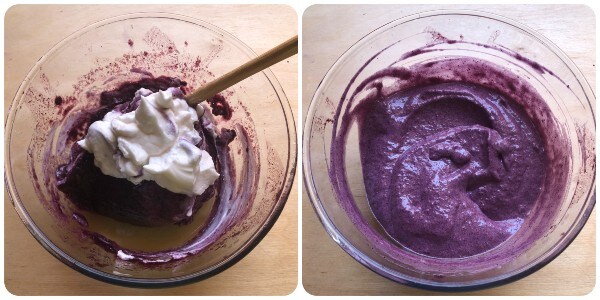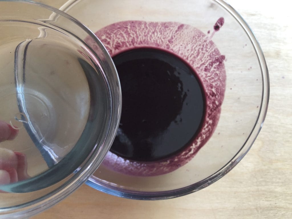 Une fois refroidi, le verser dans le bol contenant le liquide de myrtilles et mélanger.