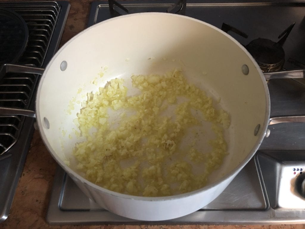 Dans une grande casserole, chauffez quelques cuillères à soupe d’huile et faites-y revenir l’oignon.
