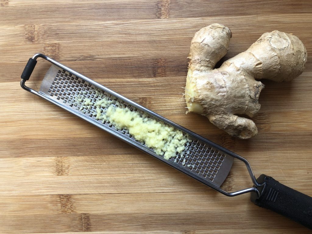 Éplucher la racine de gingembre et la râper (la quantité dépend du goût personnel).