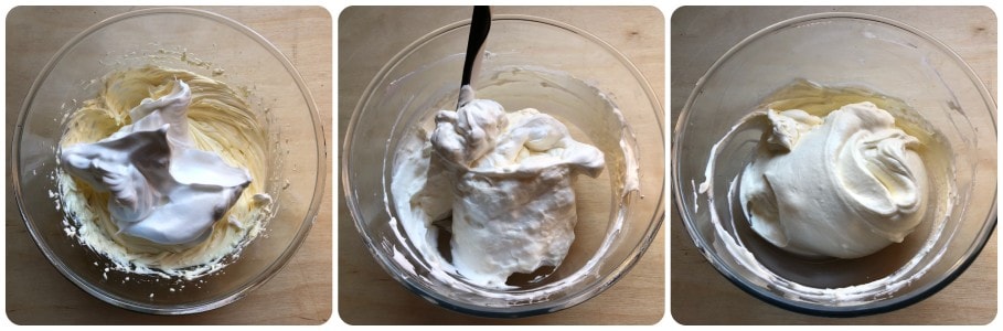 • Maintenant, avec une spatule, incorporez délicatement les blancs en neige au mélange en effectuant des mouvements de bas en haut.