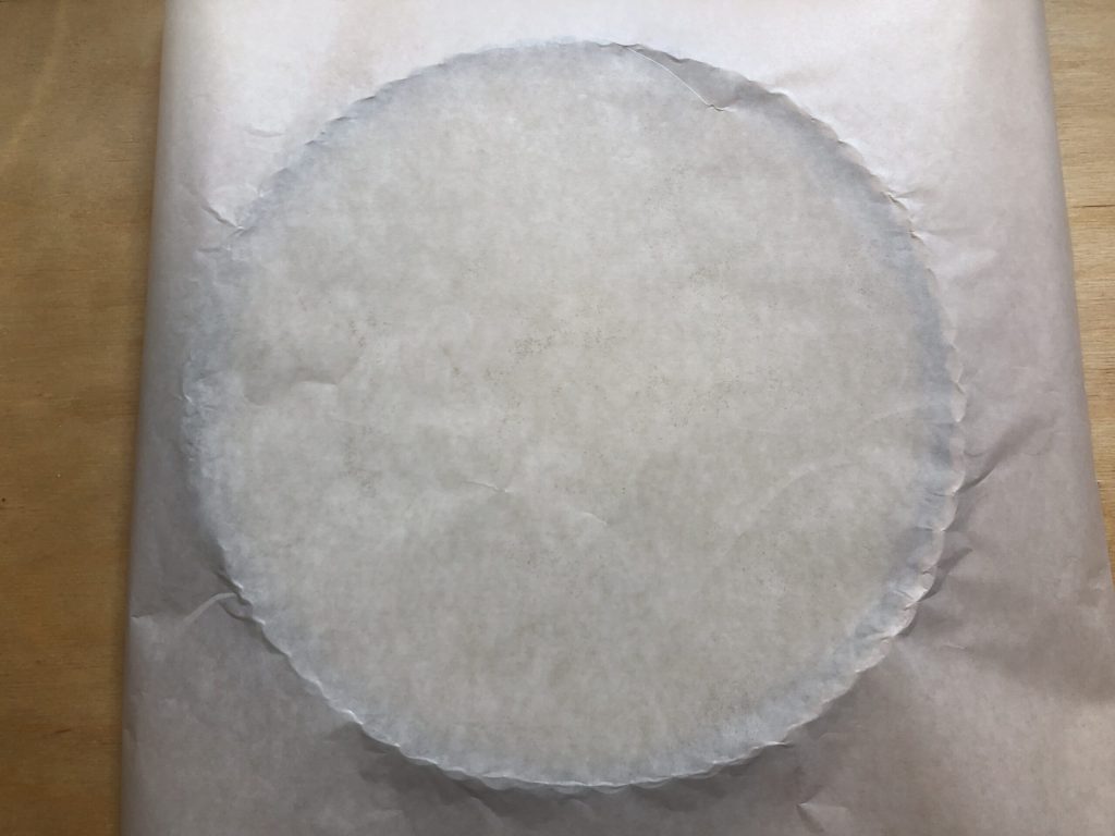• Poser une feuille de papier cuisson sur le moule à tarte, afin d’en marquer les bords.
