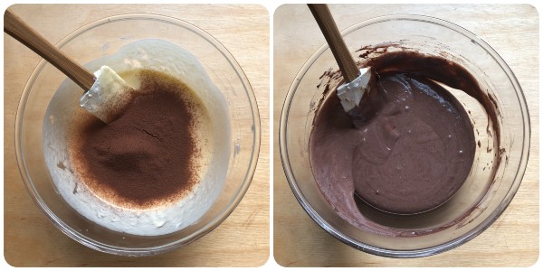 • Maintenant incorporer le cacao tamisé à travers un petit tamis et l’incorporer parfaitement.