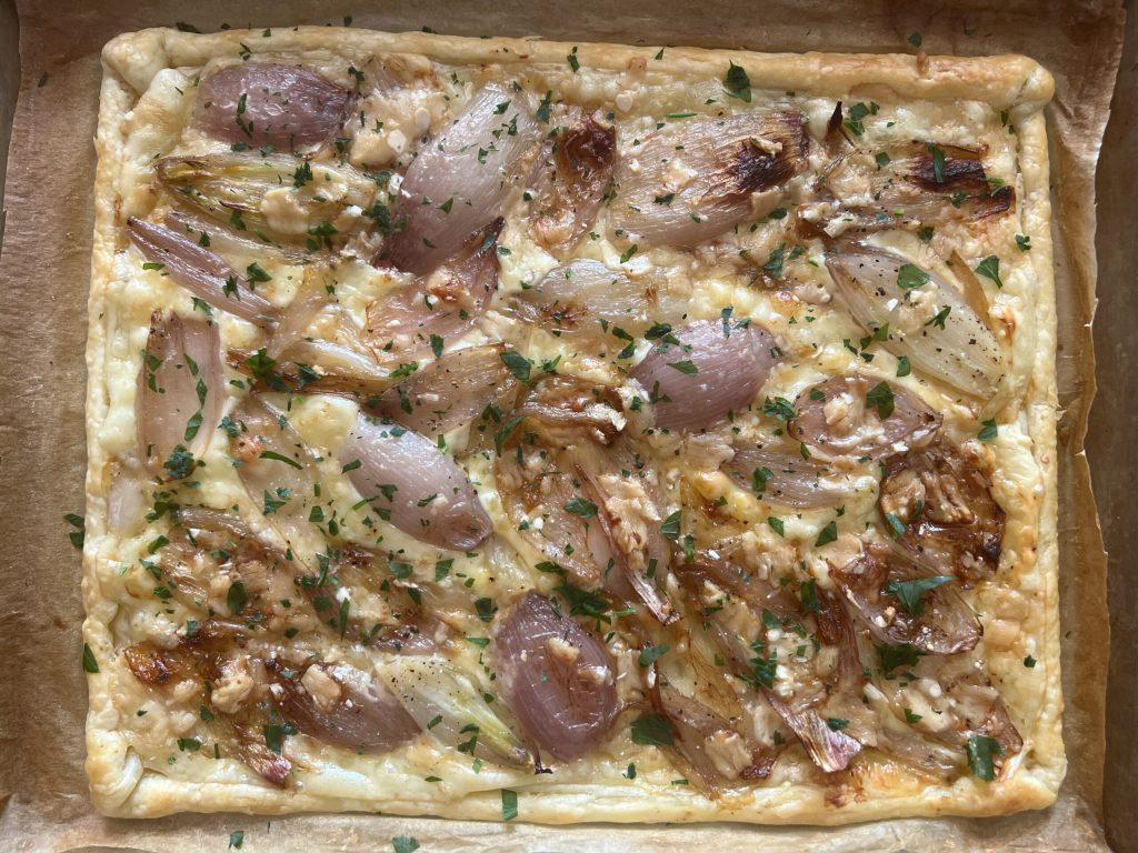 Si vous avez envie d’un amuse-bouche savoureux à servir pour un goûter, un brunch du dimanche ou même comme entrée pour un dîner rustique entre amis, l’idée de cette tarte feuilletée à l’échalote pourrait vous plaire. Elle est très appétissante et très facile à préparer. Bien sûr… il faut aimer les oignons et compagnie, mais cela me semble évident. Ce ne sera pas une recette de sauvetage, puisqu’elle n’est pas si rassasiante, mais je vous assure que vous l’aimerez. On parie ?
