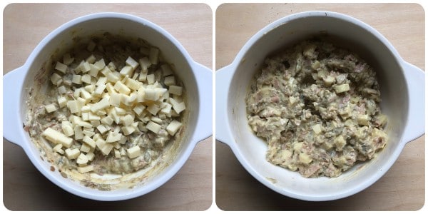 Enfin ajouter aussi la scamorza et bien mélanger le tout, en ajustant le sel et le poivre si nécessaire.