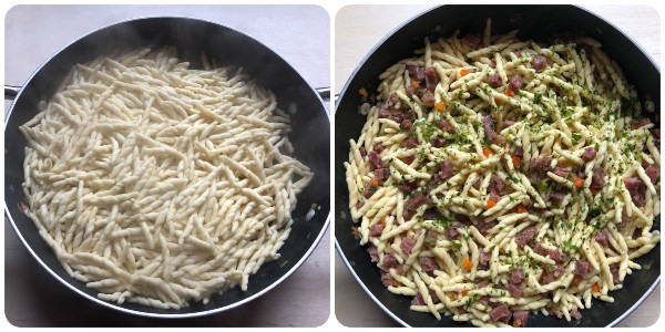 Préparation des trofie au cotechino