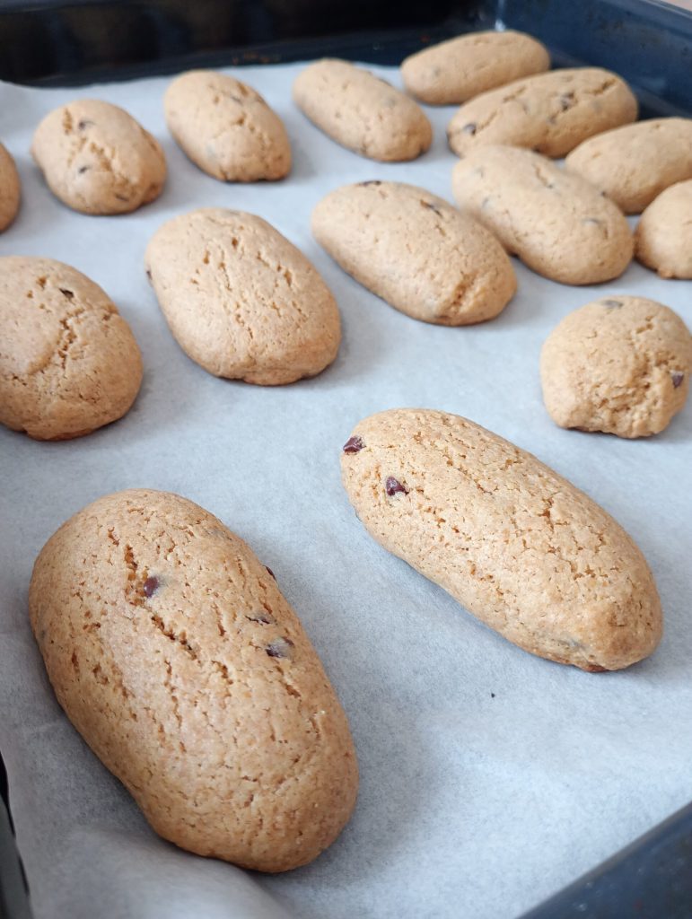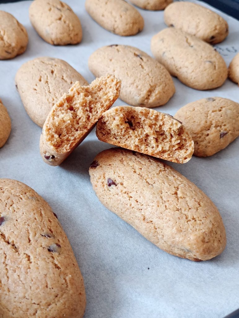 Avec ces biscuits à tremper, c’est comme revenir en arrière dans le temps, les gros biscuits d’autrefois, ceux qui étaient vraiment bons que nous mangions quand nous étions enfants. Parfaits avec du lait, du thé ou pour accompagner un café. Les biscuits à tremper sont exactement ce qu’il faut pour bien commencer la journée. Ils sont très friables grâce à la pâte sablée au beurre, et si vous les conservez correctement dans une boîte en fer blanc ou dans une boîte à biscuits, ils durent plusieurs jours. Ce sont des biscuits très simples que j’ai décidé d’enrichir avec des pépites de chocolat noir pour ajouter une touche de gourmandise supplémentaire.