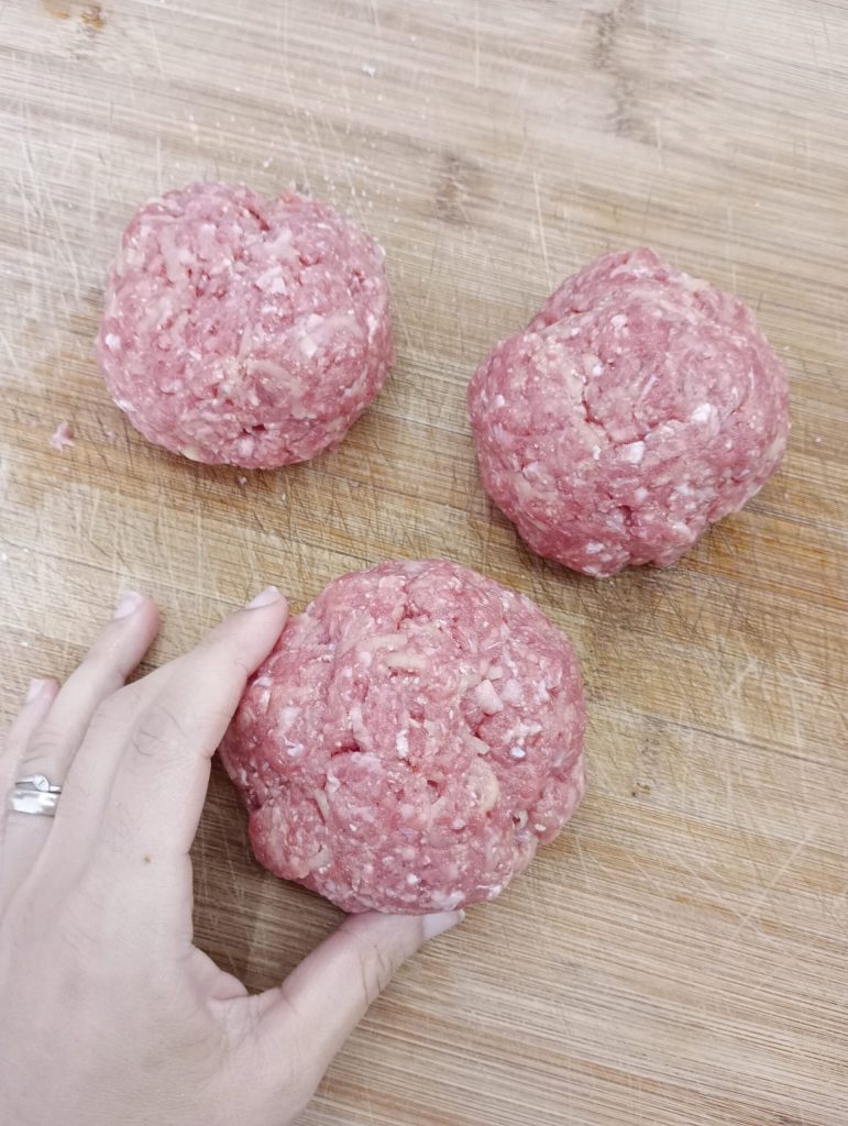 Avec ces quantités, j’ai réalisé trois grandes boulettes et le bouillon pour les petites pâtes pour 3 personnes