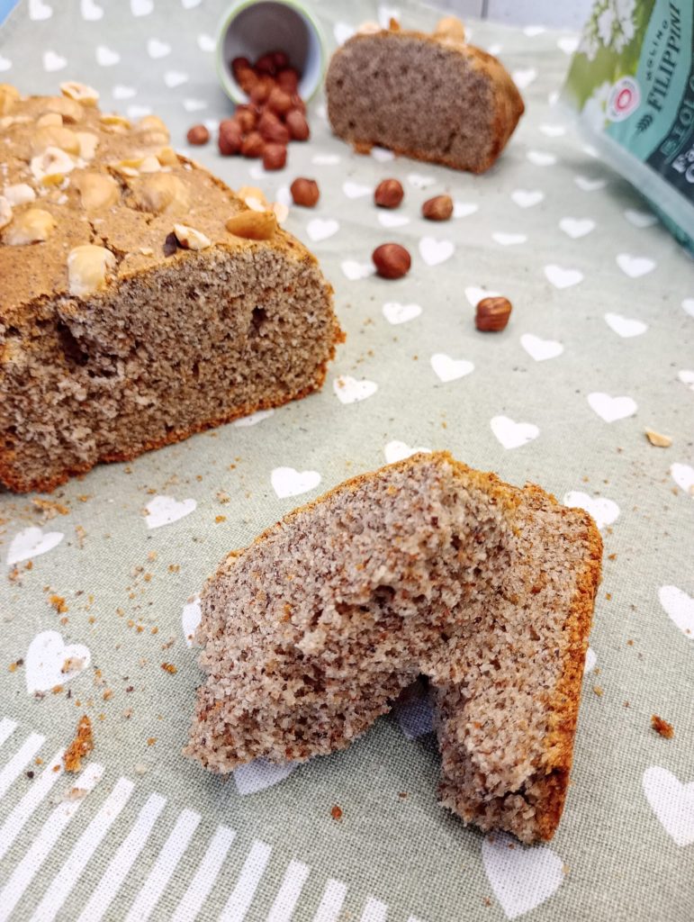 Cake au blé noir est le gâteau de garde-manger parfait pour ton petit déjeuner, une manière idéale de bien commencer la journée. Ce gâteau est parfait aussi pour ceux qui souffrent d’intolérance au gluten, puisque la farine de blé noir n’en contient pas. Cette farine, l’une des préférées, a une saveur et un parfum intenses et rustiques, qui rappellent beaucoup la noisette. Pour cette raison, j’ai choisi d’ajouter une poignée de noisettes sur le dessus. Pour profiter au mieux du cake, je te conseille de le servir tranché avec une fine couche de confiture aux myrtilles : tu vas adorer!