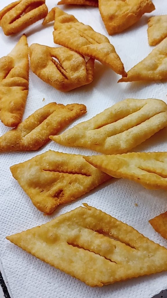 ➡️Si pendant la friture une sorte de mousse apparaît, cela signifie que c’est la conséquence d’une température d’huile trop basse ou d’une baisse de température, par exemple lorsque nous essayons de faire cuire trop de morceaux à la fois. Dans ce cas, il suffira d’éliminer la mousse avec une écumoire et d’attendre que l’huile revienne à la bonne température avant de frire d’autres morceaux. Venez avec moi, on commence tout de suite à pâtisser.