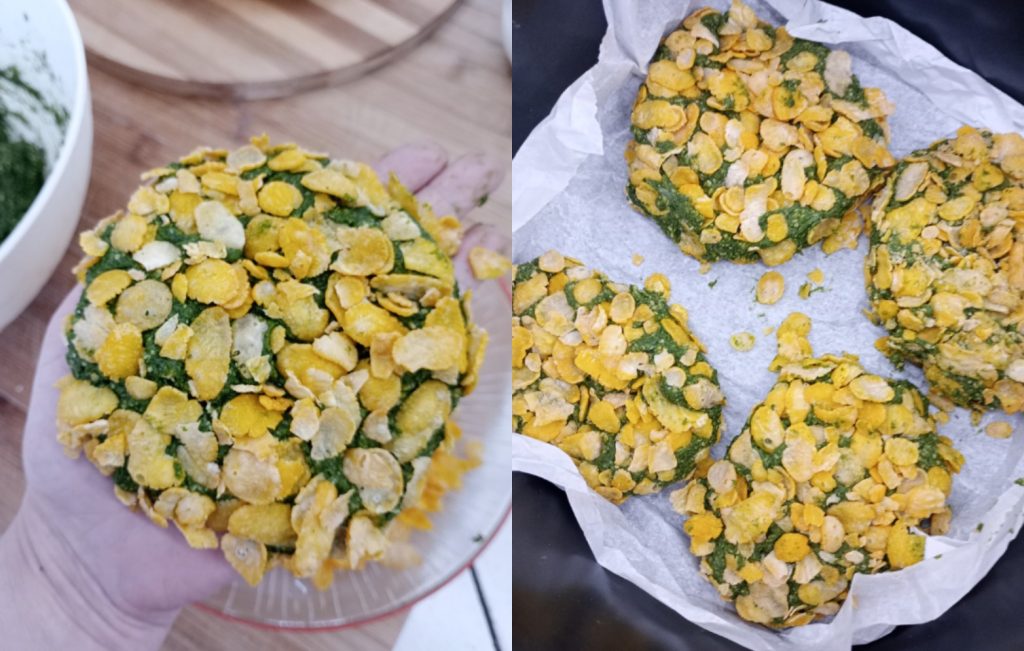 Aujourd’hui, je partage avec vous ces côtelettes d’épinards et de pois chiches. J’aime énormément les légumes et surtout les légumineuses, mais malheureusement je ne peux souvent pas les manger à cause de problèmes de digestion. J’ai donc décidé de mixer les pois chiches avec les épinards, ce qui les rend plus digestes. Les côtelettes d’épinards et de pois chiches sont vraiment savoureuses, elles sont très tendres à l’intérieur et croustillantes à l’extérieur. Pour la panure, j’ai utilisé des corn flakes qui apportent un croustillant spécial, si vous préférez vous pouvez utiliser de la chapelure mais je vous préviens déjà que le résultat ne sera pas le même.