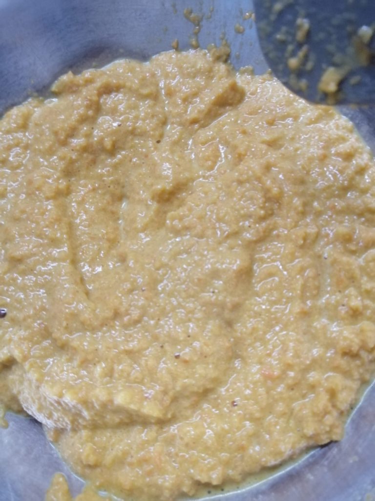 Dans un mixeur de cuisine, verser l’huile de graines et les carottes pelées et coupées en morceaux (si vous utilisez celles déjà prêtes, assurez-vous qu’elles soient bien égouttées). Mixez soigneusement jusqu’à obtenir une purée lisse et homogène.