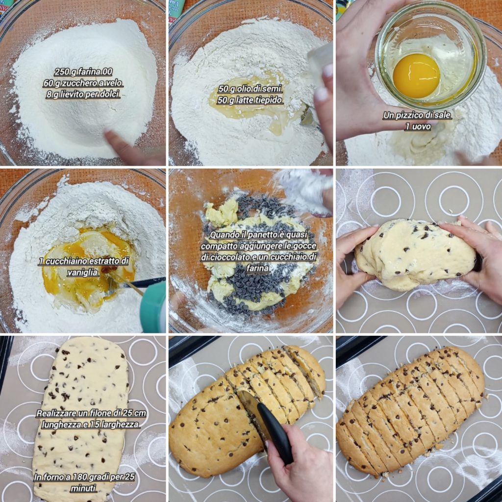 Lorsque la pâte est presque formée, ajoutez les pépites de chocolat et deux cuillères de farine. Continuez à travailler le mélange jusqu’à obtenir une pâte douce et homogène. Si elle est trop collante, ajoutez une autre cuillère de farine à la fois, jusqu’à la consistance désirée.