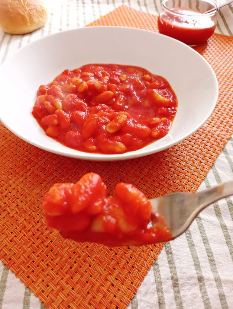 Un plat très facile à préparer. Les haricots à la sauce tomate sont un plat très pratique et délicieux. Je suis souvent pressée donc pour cette recette j’ai utilisé des haricots précuits. En une demi-heure, vous aurez un plat complet et très nutritif. Les haricots ont de nombreuses propriétés, sont naturellement sans cholestérol, riches en fibres et en lécithine, un composé qui favorise l’émulsion des graisses. Ils contiennent également des vitamines, surtout des groupes A, B, C et E, et des sels minéraux, notamment du fer, du potassium, du calcium, du phosphore et du zinc.