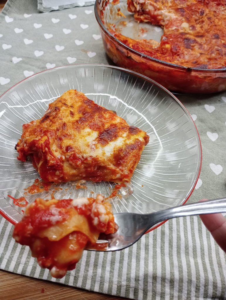 Les lasagnes à la tomate sont prêtes à être dégustées!