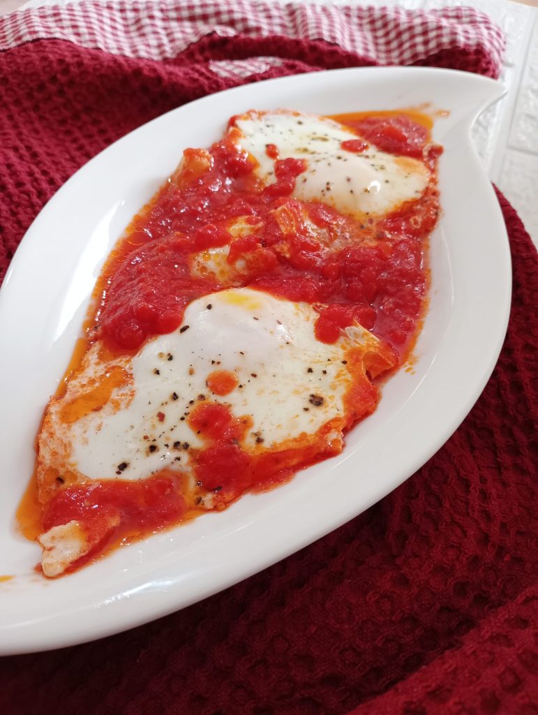 Les œufs à la tomate sont simples et appétissants, ils sont depuis toujours une excellente solution. Un plat qui me rappelle mon enfance chaque fois que je le mange. Indispensable d’accompagner ce plat avec du bon pain pour recueillir toute la sauce. Un plat qui se prépare très rapidement, idéal lorsque l’on a peu de temps mais que l’on ne veut pas renoncer au goût.