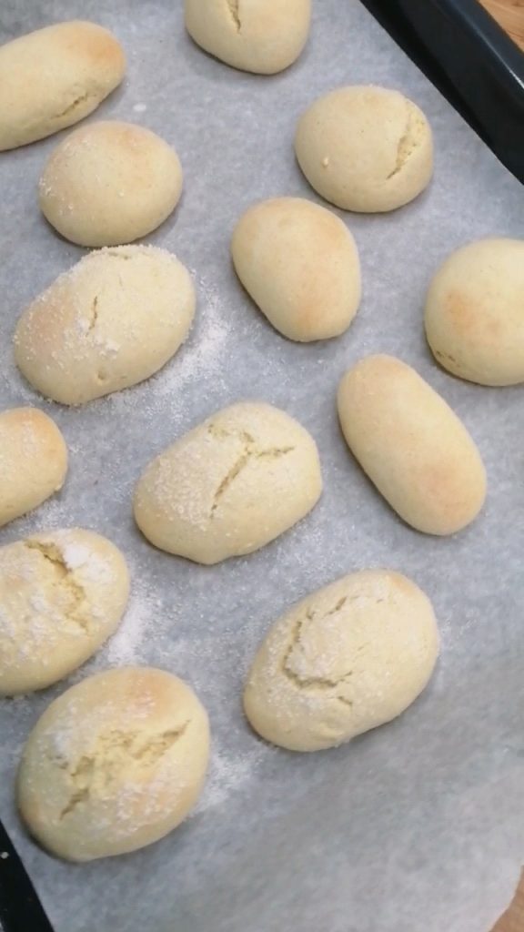 Roulez-les dans du sucre en poudre. Enfourner à 180 degrés, four statique préchauffé, pour 20-25 minutes.
