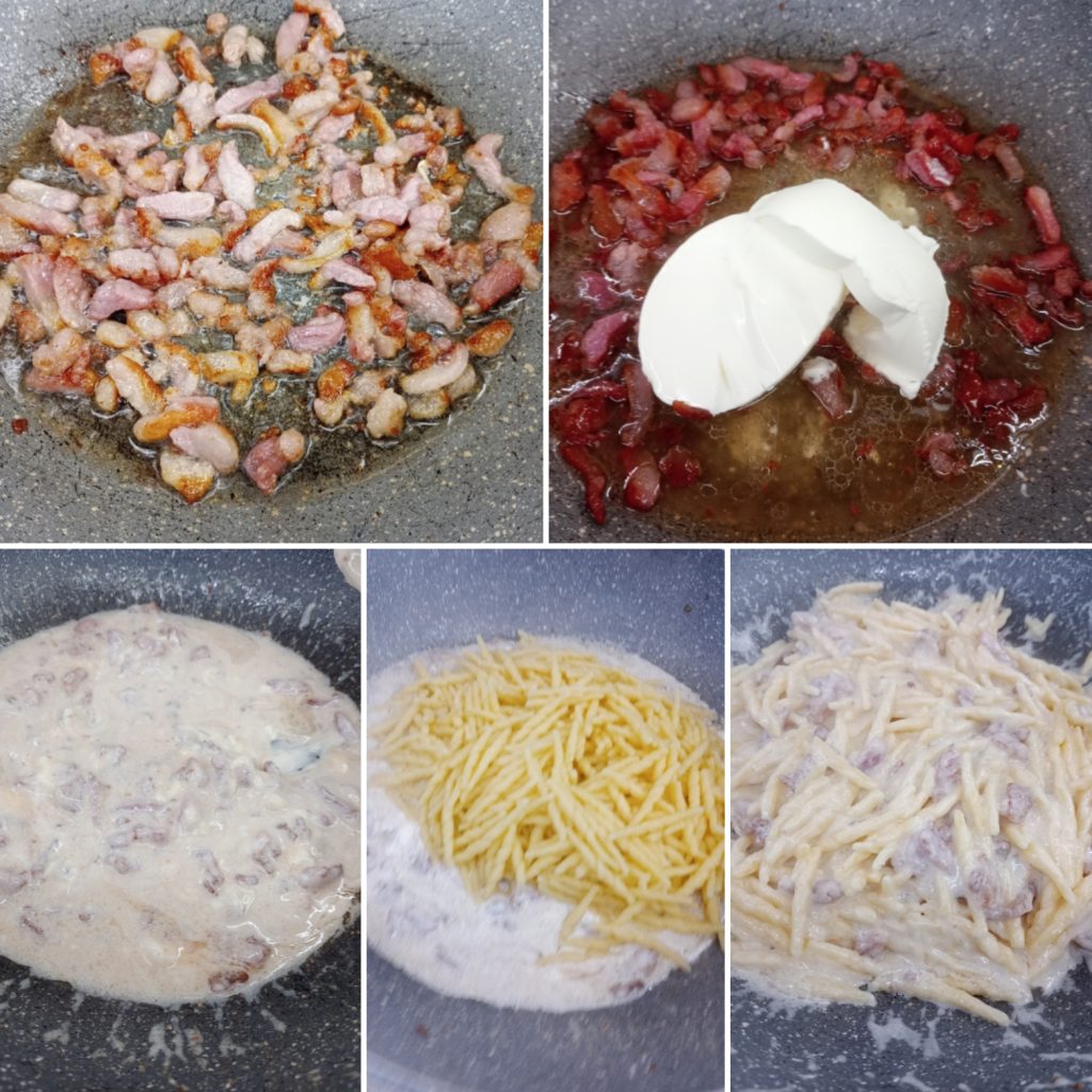 Étapes pour les pâtes crémeuses avec guanciale robiola