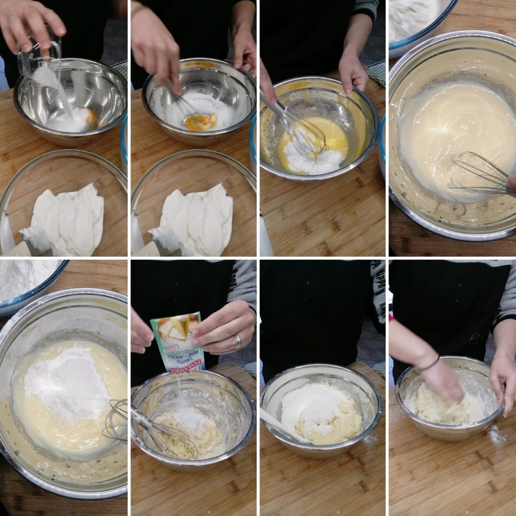 À ce stade, commencer à ajouter la farine en trois fois, en alternant et en mélangeant.