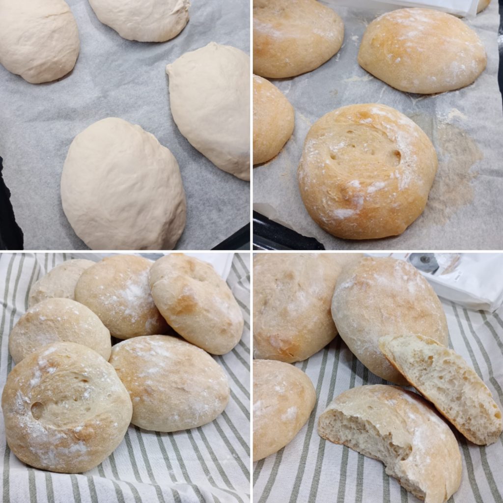 Répétez cette opération pour former tous les petits pains et déposez-les sur une plaque recouverte de papier cuisson et laissez lever pour une heure supplémentaire, couvrez avec une autre plaque ou avec du film alimentaire.