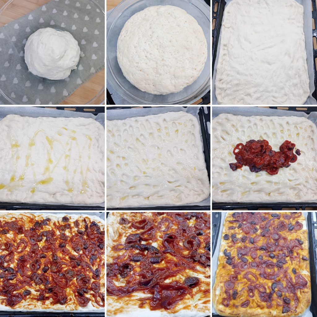 La pizza rouge avec oignons est trop bonne. L’intérieur est très moelleux, presque comme une focaccia douce, et une croûte parfaite se forme en surface le long des bords. La purée de tomates et les oignons la rendent savoureuse et irrésistible. Vous devez absolument l’essayer, vous ne le regretterez pas.