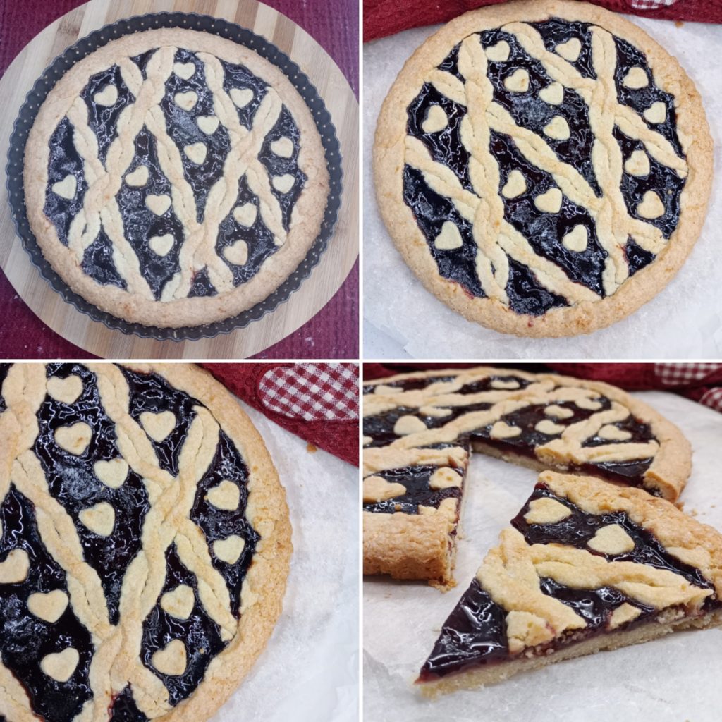 le dessert se conserve plusieurs jours à température ambiante couvert par une cloche alimentaire ou, si vous préférez, également au frigo; dans ce dernier cas, la pâte sablée pourrait légèrement durcir.