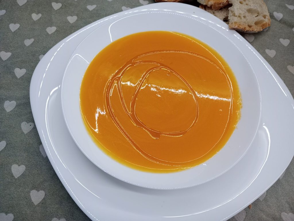 Tu peux la déguster chaude, avec un filet d’huile et beaucoup de croûtons croustillants ou pour un plat unique, tu peux cuire des pâtes émiettées directement dans la veloutée mixée. Si elle est trop épaisse, ajoute un peu d’eau ou de bouillon chaud.