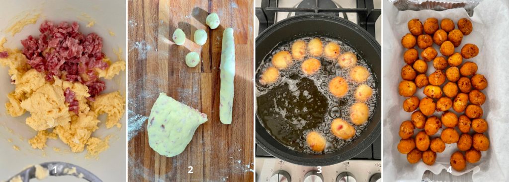 Une idée gourmande pour la période de Carnaval, différente des classiques desserts frits… Castagnoles salées, très simples et savoureuses, avec une pâte à la ricotta et des morceaux de salami. Elles se préparent comme les castagnoles classiques et sont excellentes comme apéritif ou pour accompagner l’apéritif, avec de la charcuterie, des fromages et des sauces. Croquantes à l’extérieur et moelleuses à l’intérieur… essayez-les vous aussi car une en amène une autre !